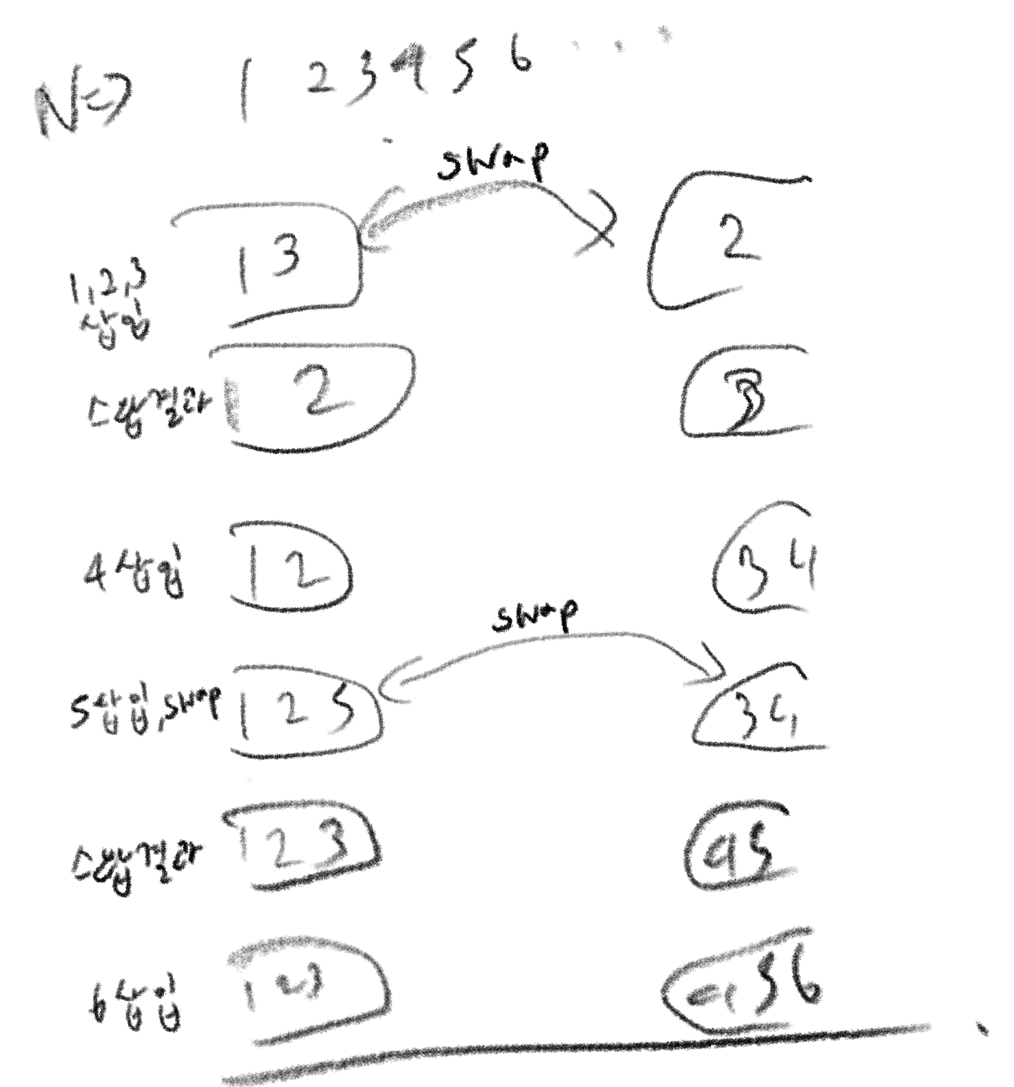 그리고 3은 홀수번째 삽입이므로 왼쪽에 넣었더니
