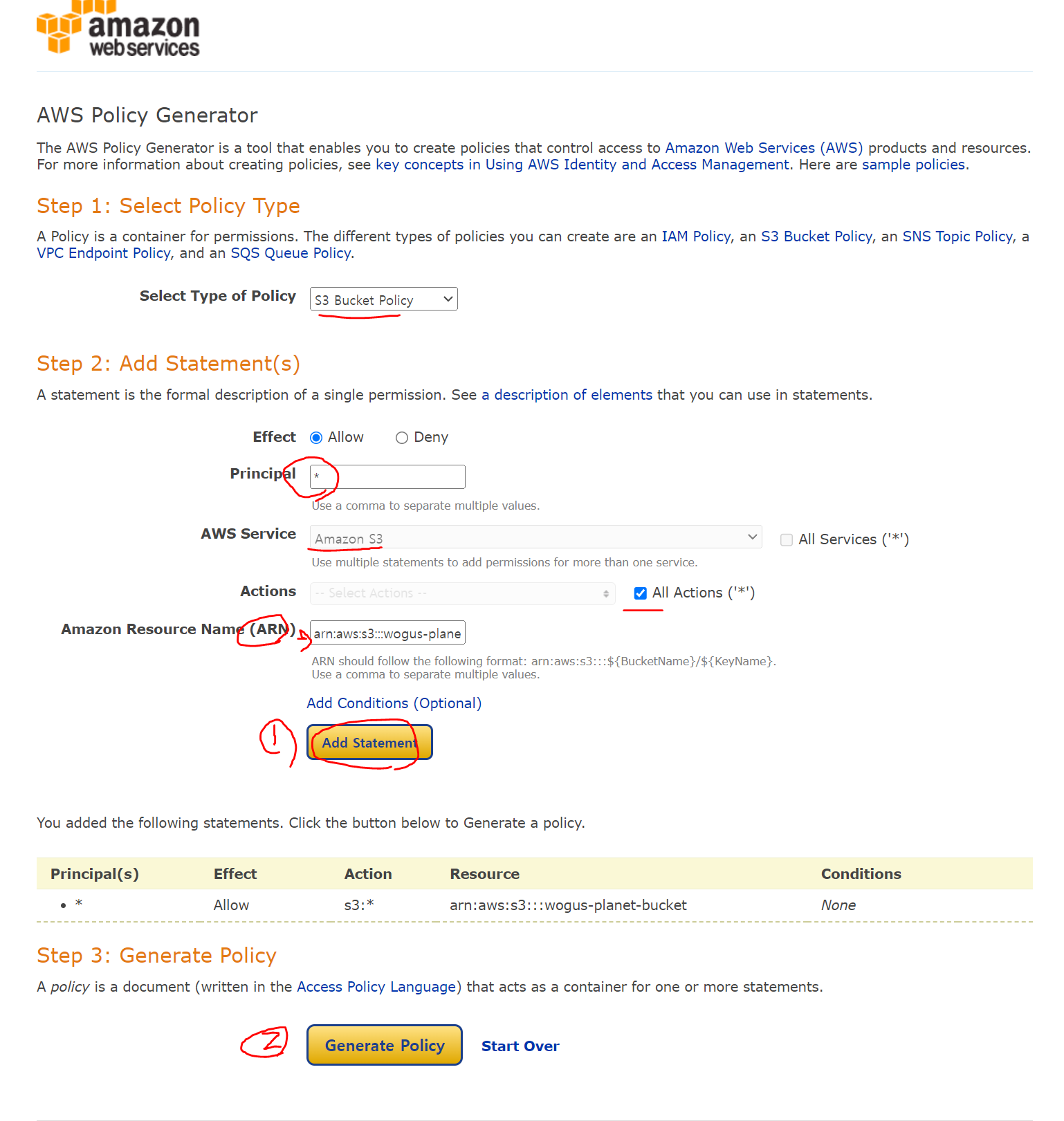 Generate Policy 까지하면 복사할 json이 나온다!