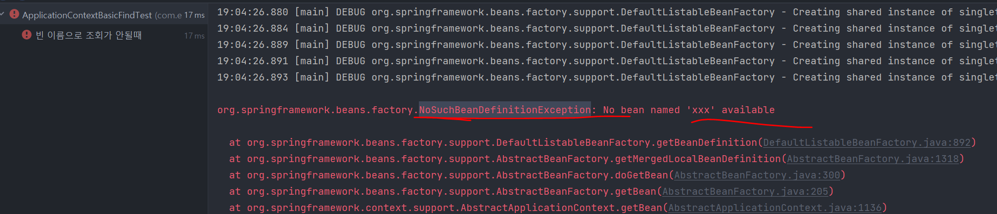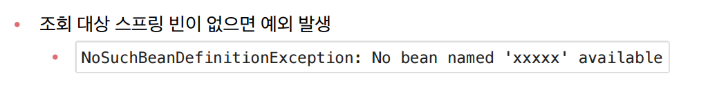 MemberService memberService = ac.getBean("xxx", MemberService.class); // xxx란 빈을 등록한적없기에 오류가 발생할것이다.