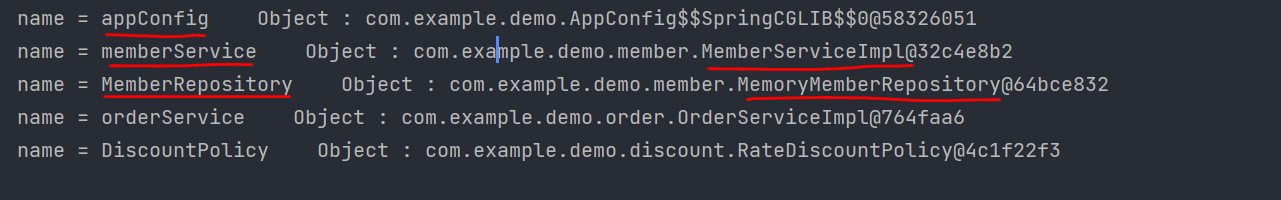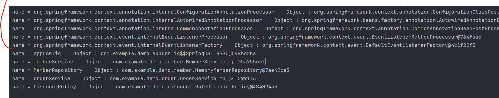Object bean = ac.getBean(beanDefinitionName);// 받아온 빈의 이름을 가지고 하나씩 꺼내본다, 타입은 지정안했기때문에 object로 꺼내진다.
