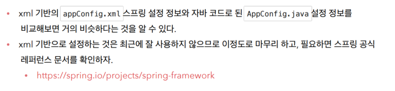 AppConfig.java와 비슷하다는것을 알 수 있다. (형식만 xml인 느낌)