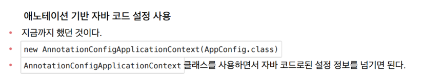 자바코드 사용해서 스프링컨테이너를 생성할때 사용했던 AnnotationConfigApplicationContext는
