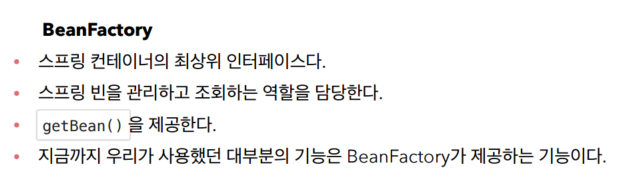 - 빈팩토리를 상속하는 인터페이스이므로 빈팩토리의 기능을 모두 상속받아서 제공한다.