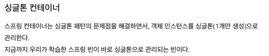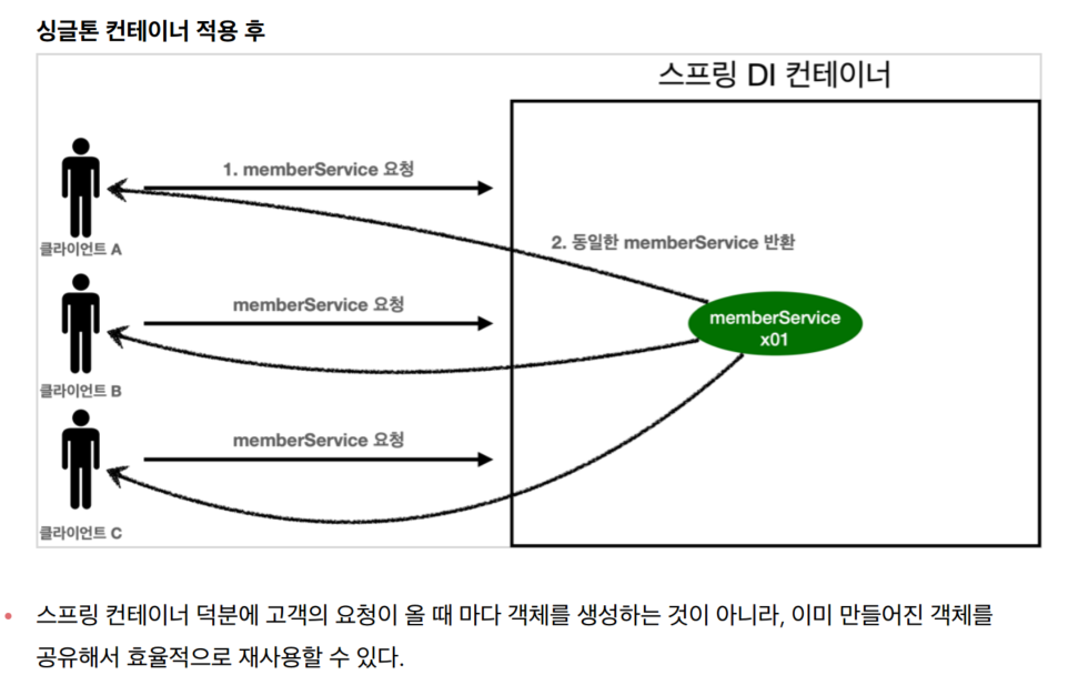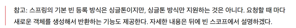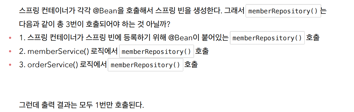 (이미 생성된 스프링빈이면 그걸 반환하고, 없으면 생성하게끔 해서 여러객체가 생성되는것을 막는다.)
