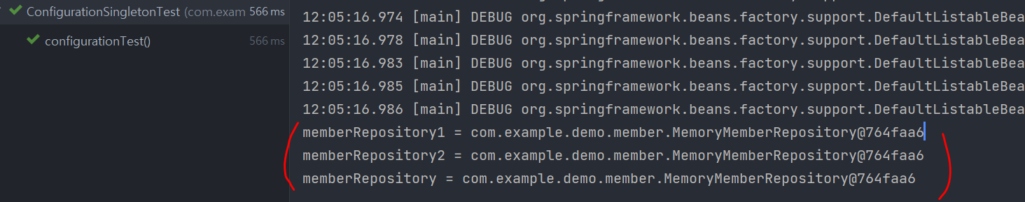 같은 객체를 받았음을 확인할 수 있다(싱글톤 적용되어있다)