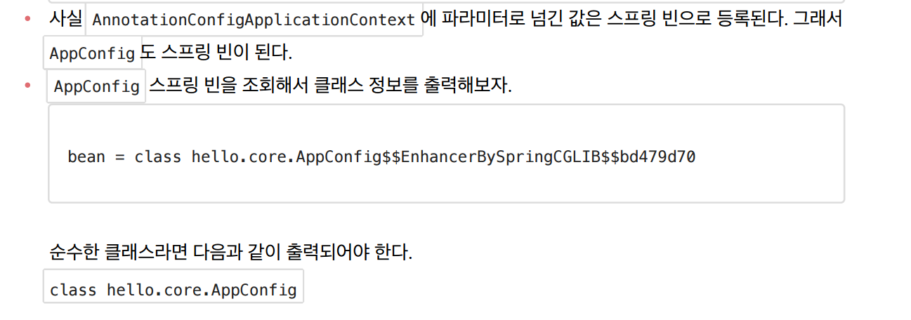 AppConfig bean = ac.getBean(AppConfig.class); //구성설정파일도 스프링빈으로 등록되니 꺼내볼수있다.