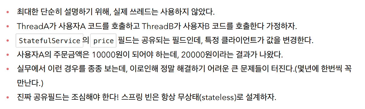 public class StatefulService { //주문이라는 메소드를 이용해서 가격을 저장하려고 만든 클래스