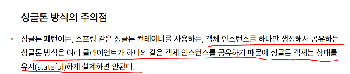 싱글톤 방식의 주의점