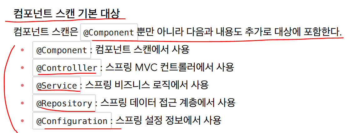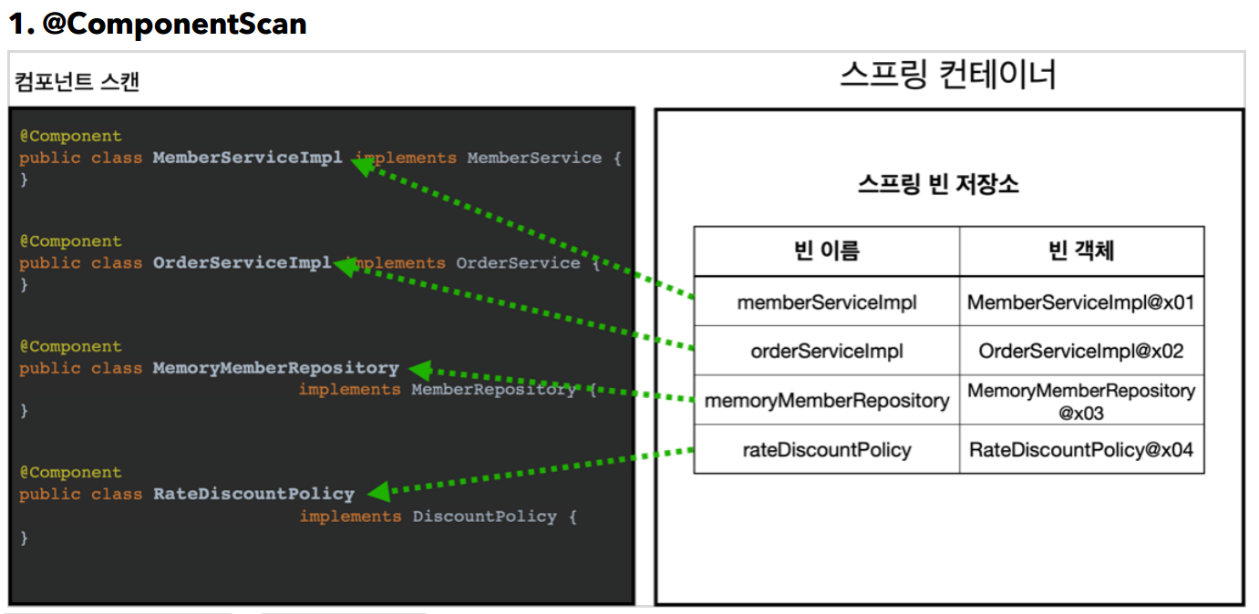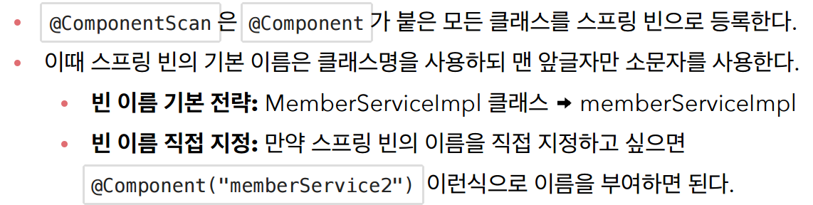 @ComponentScan을 사용하면 @Component 어노테이션이 붙은 모든 클래스를 찾아서 자동으로 스프링빈으로 등록해준다.