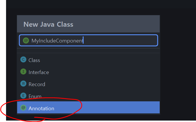 public @interface MyIncludeComponent { //임의로 만든 어노테이션,이 어노테이션이 붙은 애들만 컴포넌트스캔할것이다.