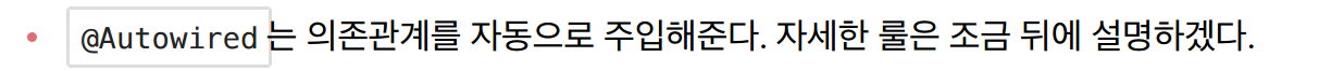 다음과 같이 의존관계를 주입받기위해 있는 생성자위에다가 @Autowired를 붙여준다.