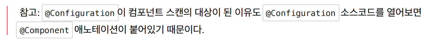 //컴포넌트스캔에 걸리는 이유는 @Configuration안에는 @Component이 있기떄문이다.