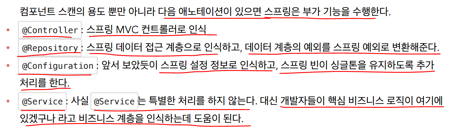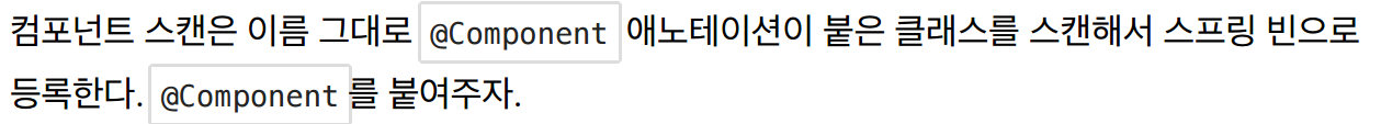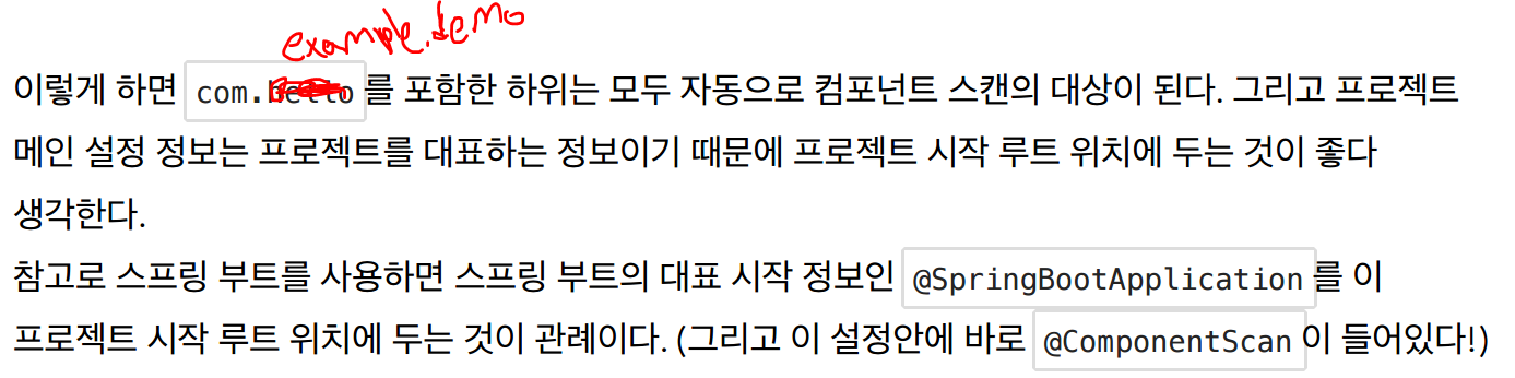 (스프링부트를 쓰면 사실 @ComponentScan을 쓸 필요가없다고한다. ~Application 클래스에서 스프링을 부팅하면서 다 스캔을 해주니까)