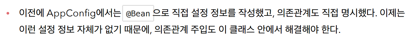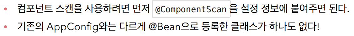 AppConfig.java와 다르게 @Bean~ 이런 빈등록하는 코드가 없다.