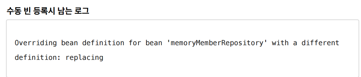 그렇게 해놓고 테스트를 해보면 오류없이 정상동작한다. 로그에서는 같은 이름이 빈이 등록되어서 오버라이드 됬다고 나온다.