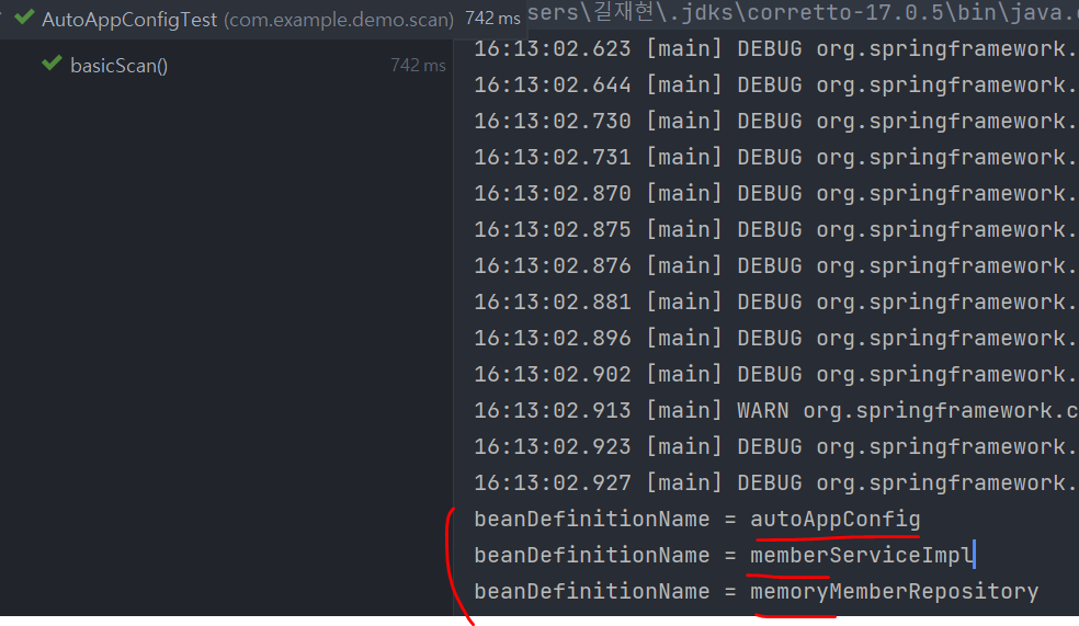 로 수정했다면 member 패키지 아래있는것들만 스캔이 되서 등록이 될것이다.