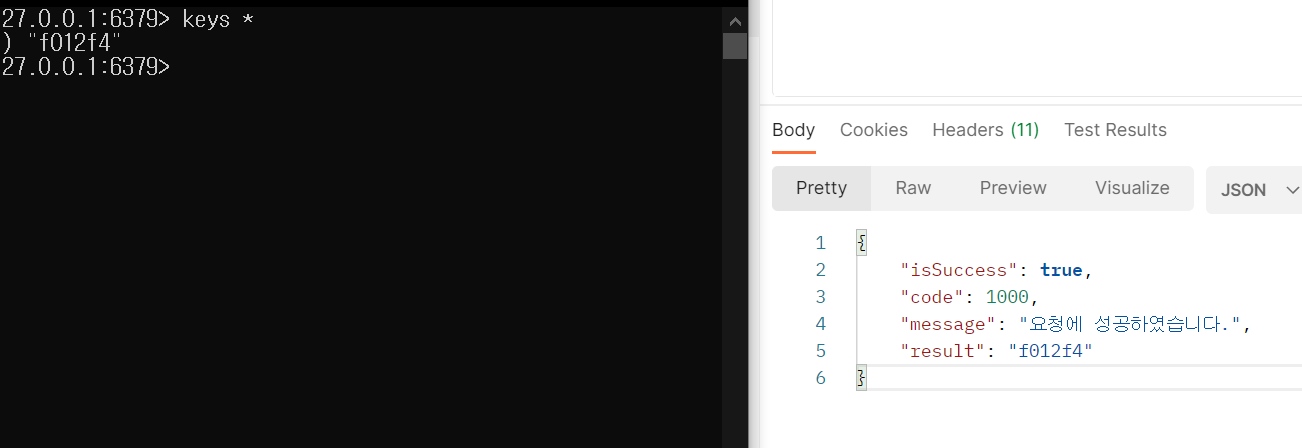 메일보내면 인증번호가 redis 데이터베이스에 저장되는걸 확인해보자.