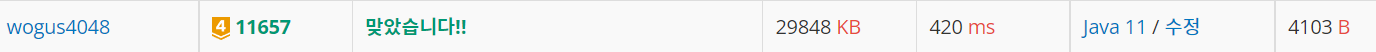 //위에서 (정점의개수-1)번 최소비용값을 초기화해줘서 초기화가 완료됬다. 1번 더했는데 값이 업데이트가 되는경우가 있다면 음수사이클이 존재하므로 실패를 의미한다.