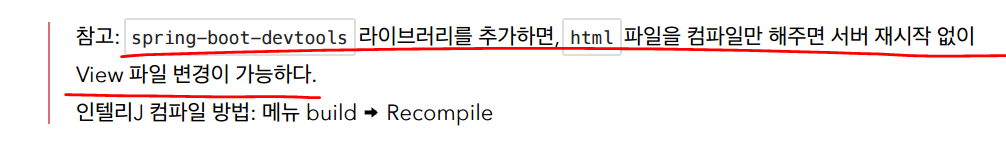 html파일을 수정하고 인텔리제이의 build -> recompile 해주면 서버를 다시껐다킬필요없이 서버가 띄어진상태에서도 수정사항을 확인할 수 있다.