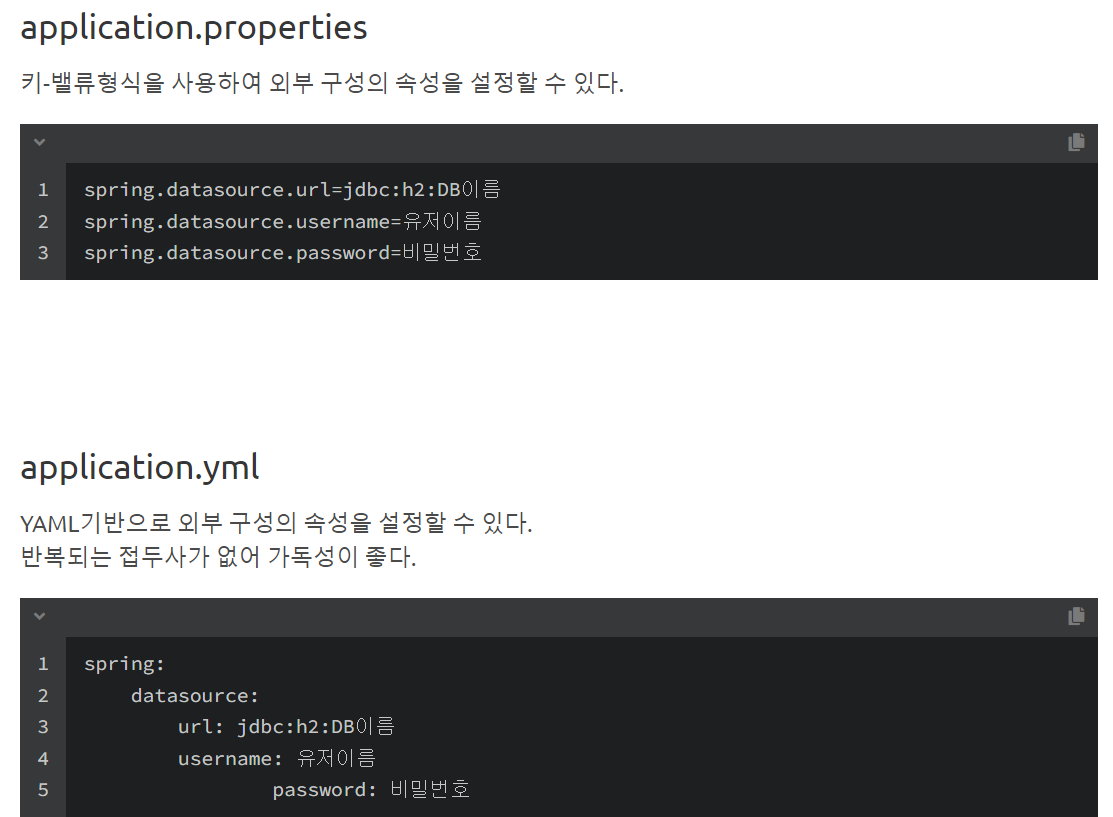둘다 프로젝트설정을 적는곳이긴한데 yml은 계층적으로 확인가능해서 편리하다고 한다.