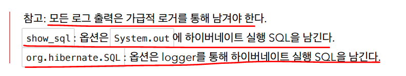 # show_sql: true System.out에 로그를 남기므로 사용 X 아래의 logging으로 남기면된다.