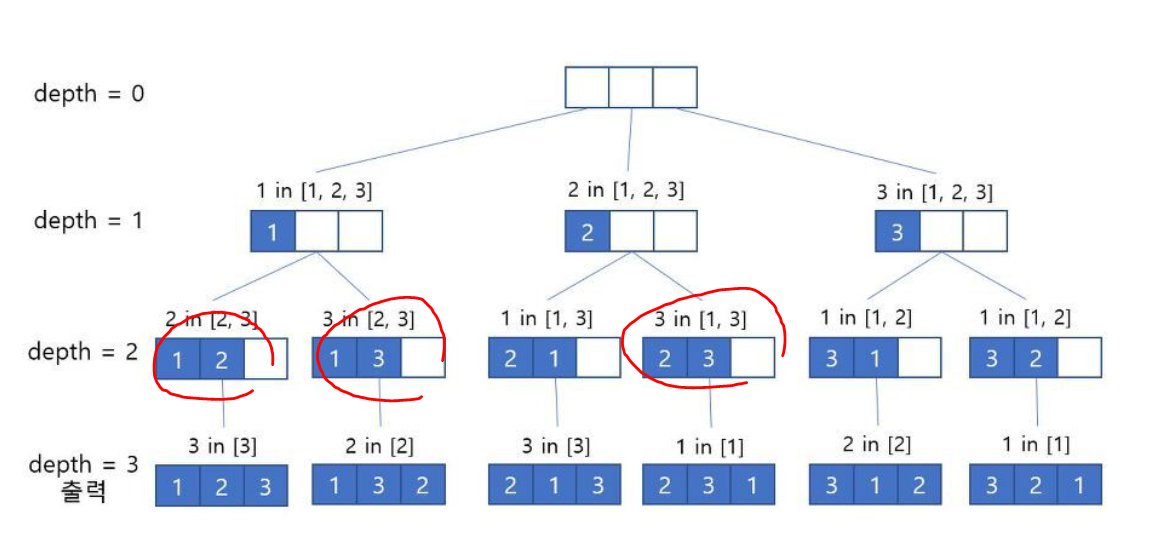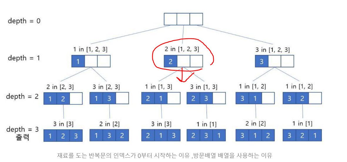 int depth =0; //depth는 트리형태로 보면 깊이로 볼 수 있고 , 간단히 생각하면 (뽑은 갯수 -1) 로 볼 수 있다. {0부터 시작하므로}