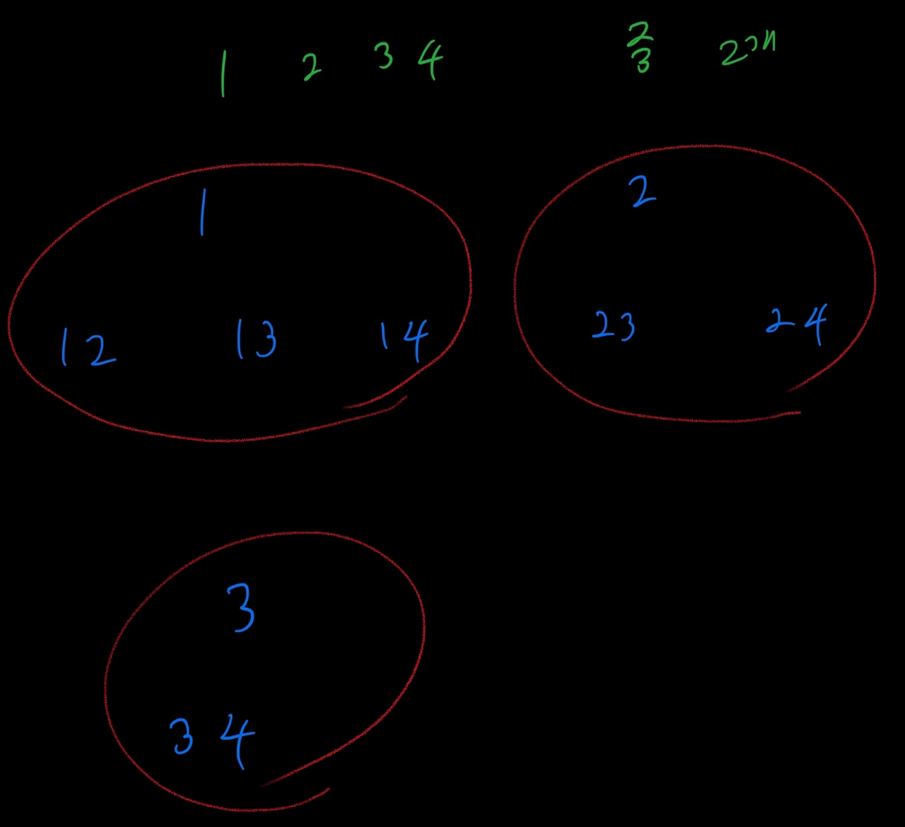 만약 1,3이 뽑힌 상황에서 세번째 뽑힐 요소는 4,5 뿐이다.