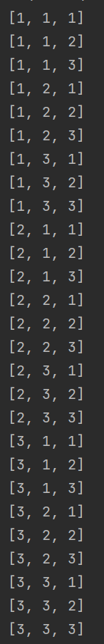 첫번째 숫자를 고를떄 각각 1,2,3 으로 시작하는 경우를 만들기위해 반복문 인덱스는 0으로 시작