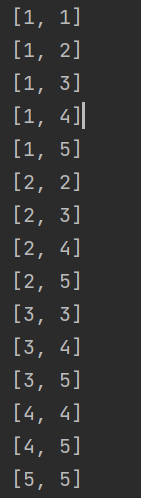 조합의 결과를 보면 첫번째요소는 1~5, 두번째요소는 2~5, 세번째 요소는 3~5만 나온다.