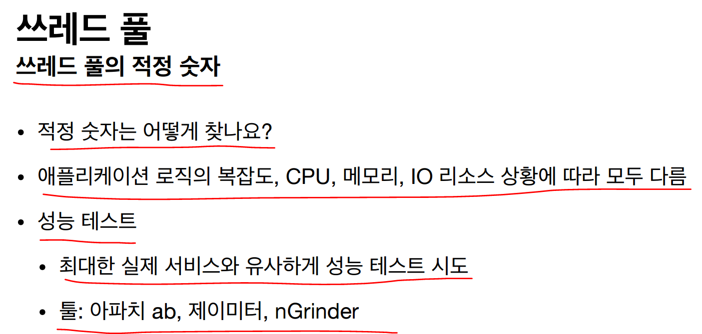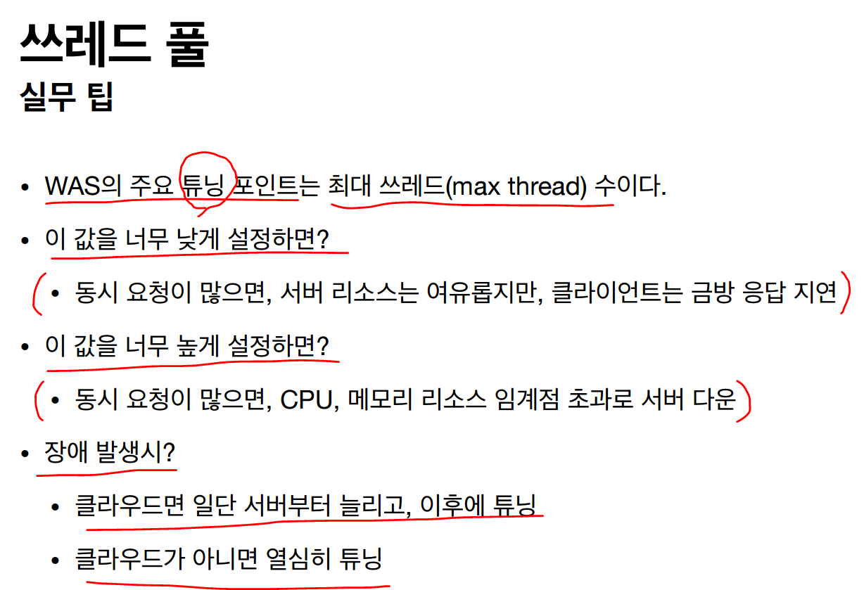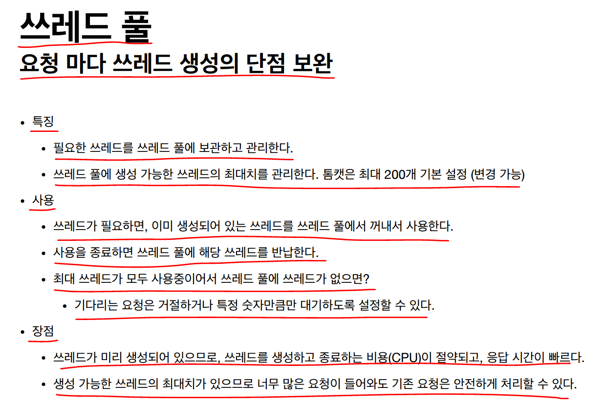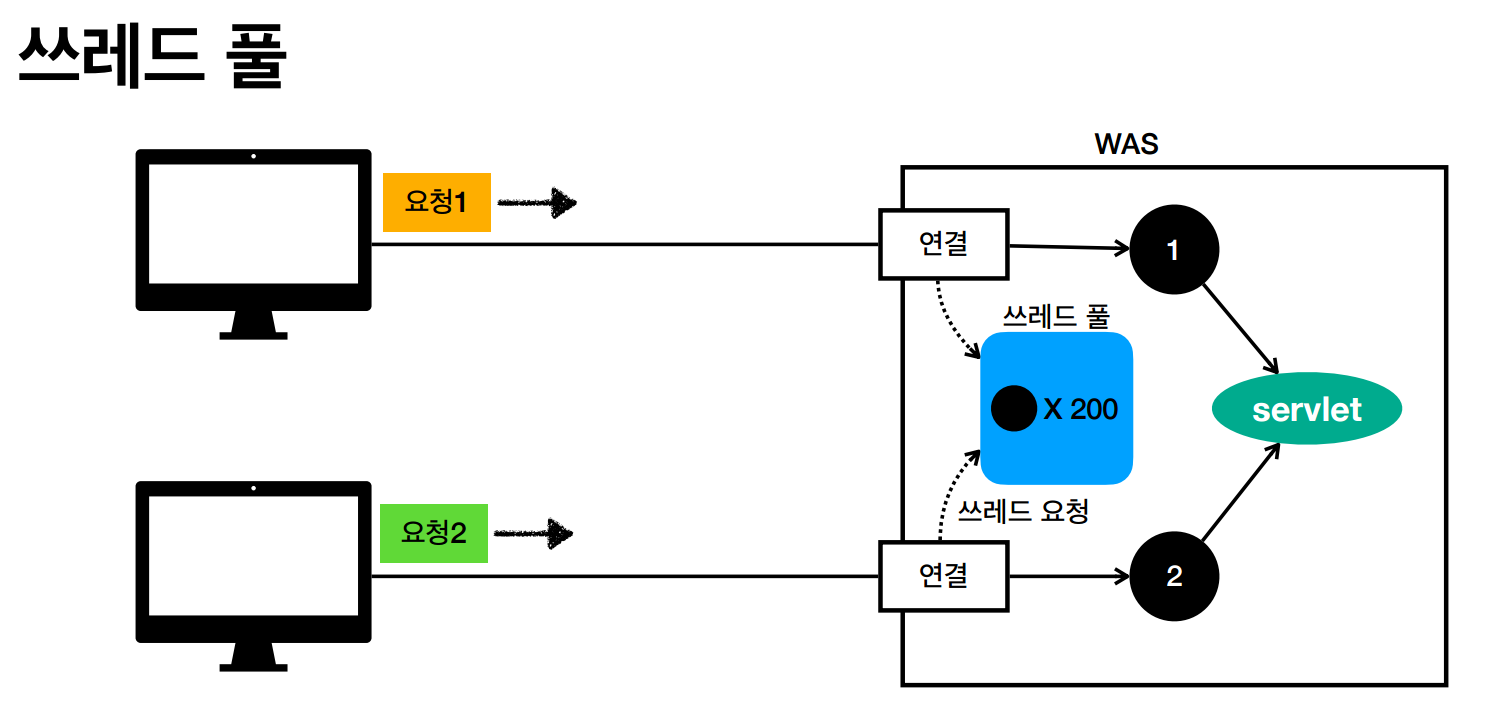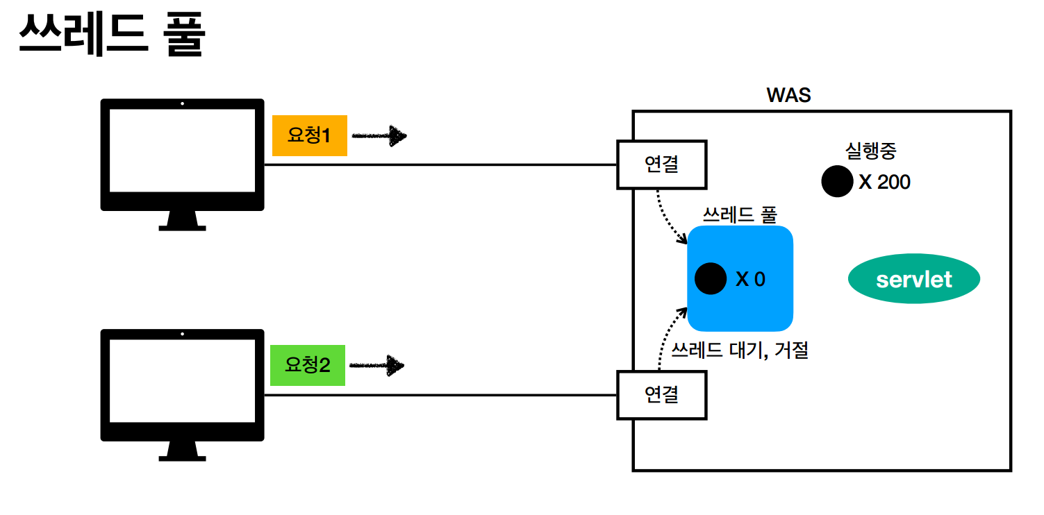 이런 단점을 해결하기 위해 보통 WAS에는 쓰레드풀이 존재한다.