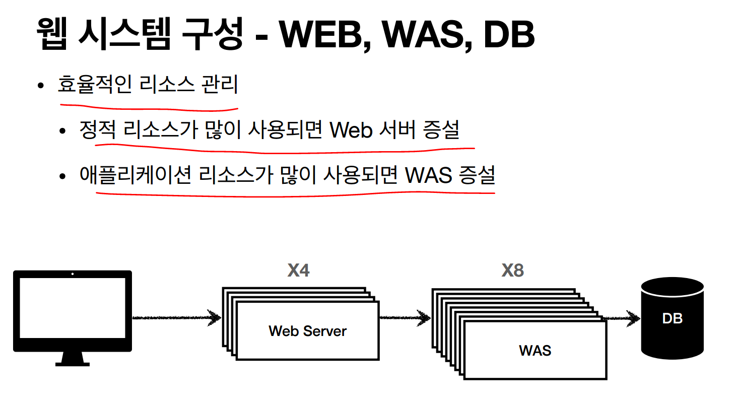 정적 리소스가 많이 사용되면 Web서버를 증설하면되고, 어플리케이션 리소스가 많이 사용되면 WAS를 증설하면 된다.