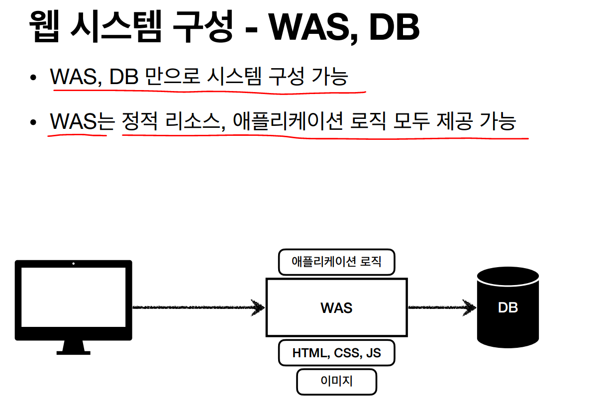 웹시스템의 구성은 WAS와 DB만으로 시스템 구성이 가능하다.