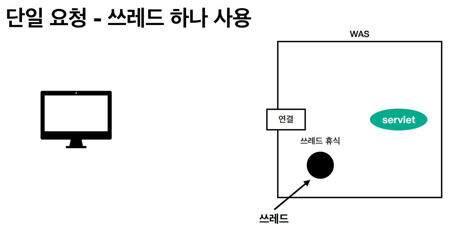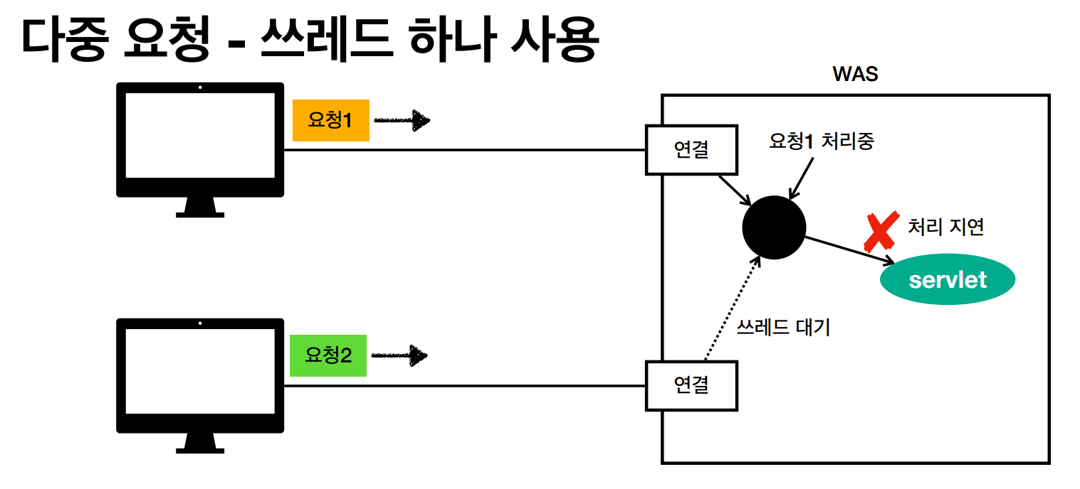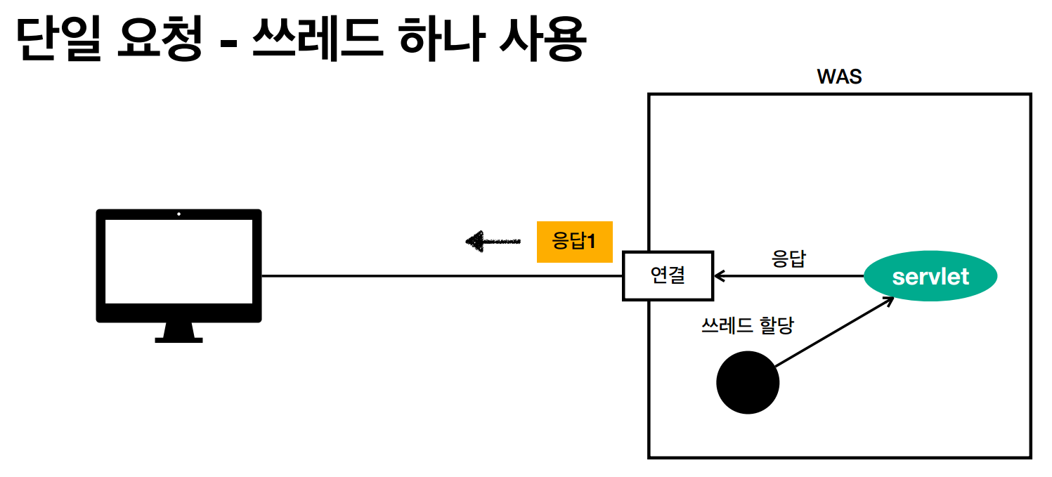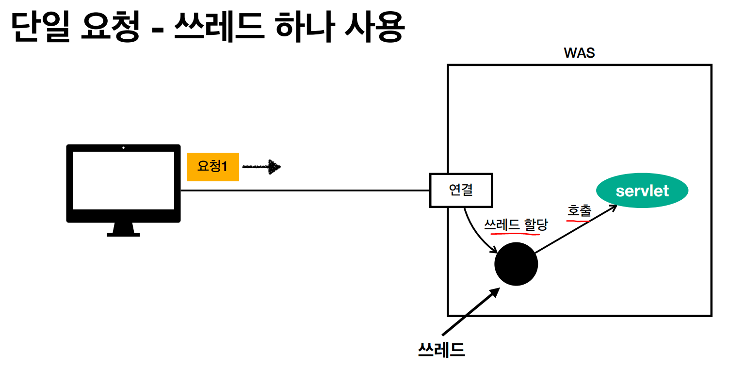 나머지는 WAS가 알아서 멀티쓰레드를 처리해준다. (요청마다 쓰레드를 할당하고, 쓰레드 반납받고..등)