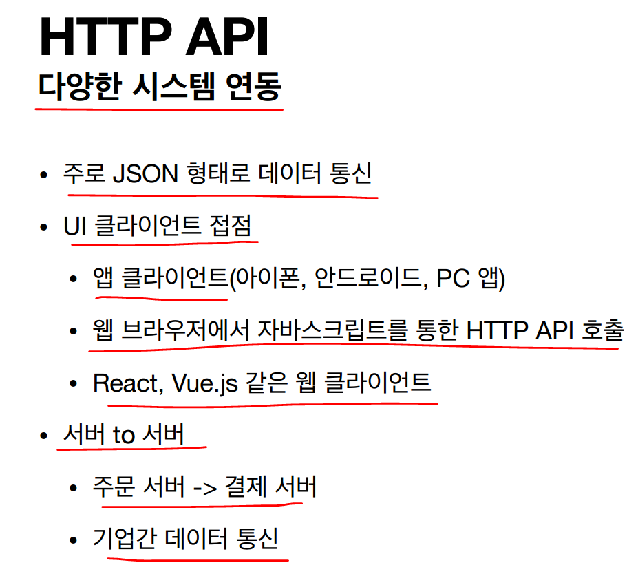 클라이언트와 서버가 서로 데이터를 주고 받거나, 서버와 서버끼리 데이터를 주고 받을 때 등 다양한 시스템에서 HTTP API를 호출해서 사용한다.