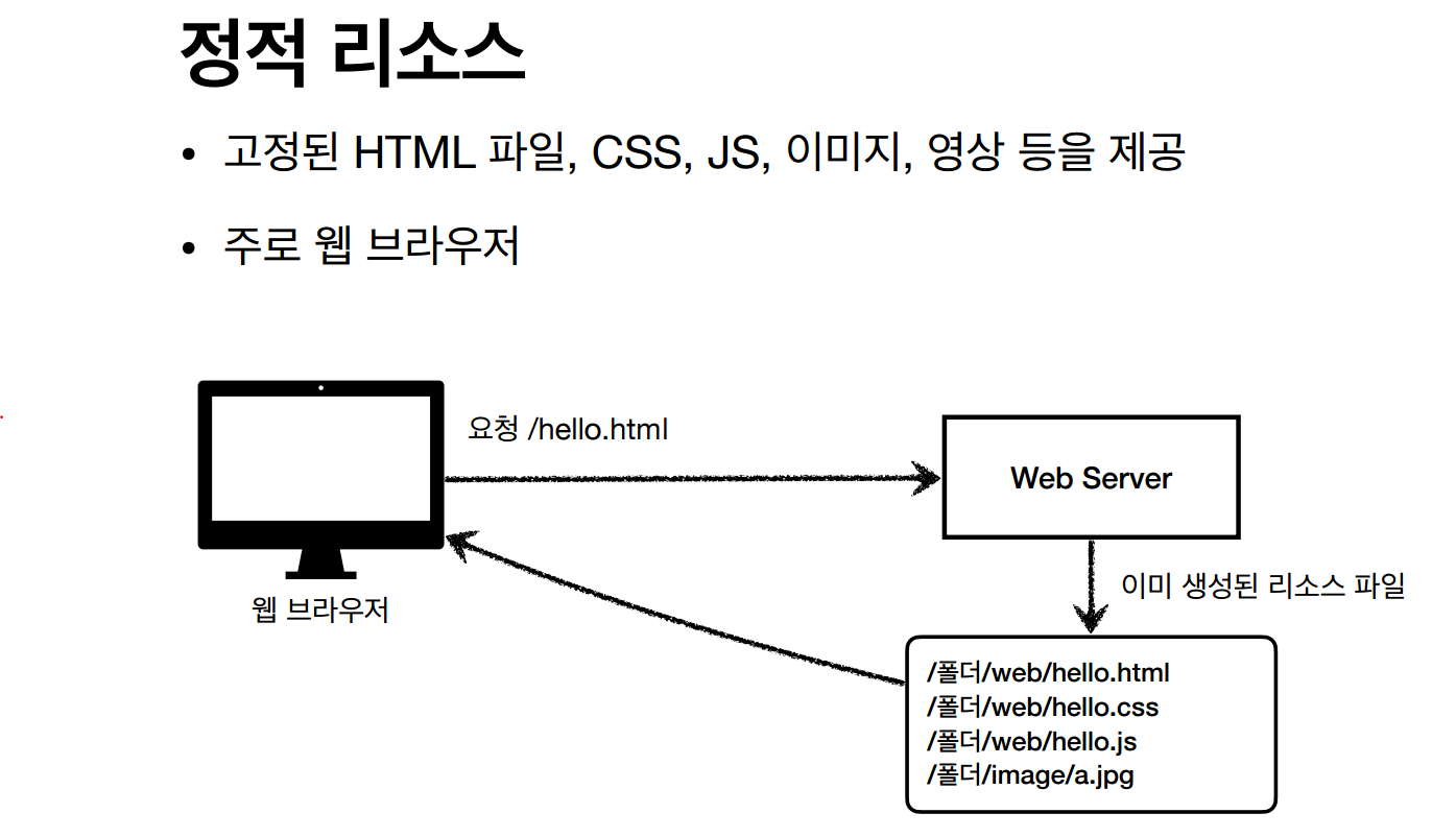 정적 리소스 => 정적 html,css,js,이미지,영상과 같은것들