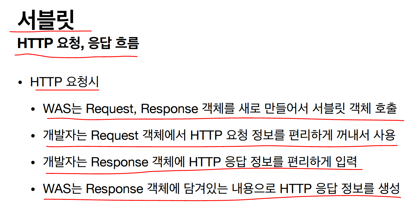 이런 서블릿을 이용하여 개발자는 http 스펙을 매우 편리하게 사용가능하다.