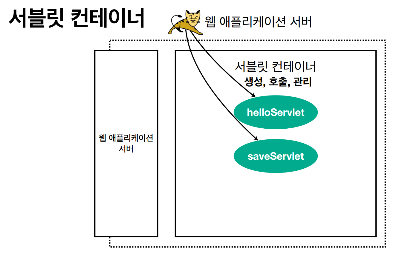 WAS가 알아서 서블릿클래스 객체를 만들어서 서블릿 컨테이너에 생성해서 보관한다.