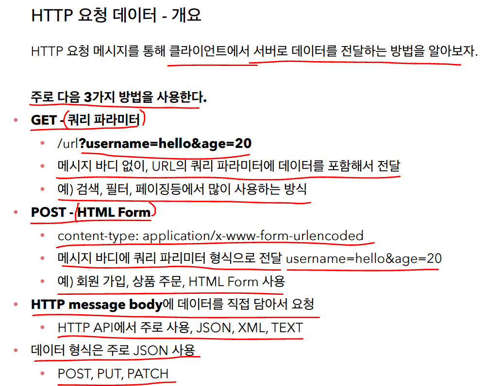 http 요청메시지를 이용해서 클라이언트가 서버로 데이터를 보내는 방법은 3가지가있다.