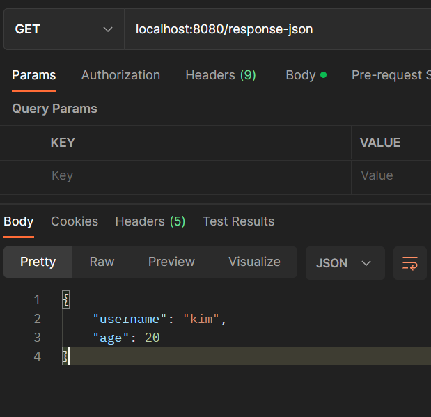 // System.out.println("result = " + result); // result = {"username":"kim","age":20}