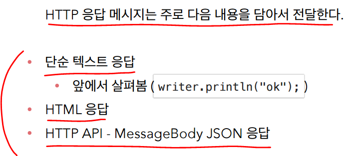 이렇게 2가지 방식으로 응답 데이터로 단순텍스트를 전달했었다.