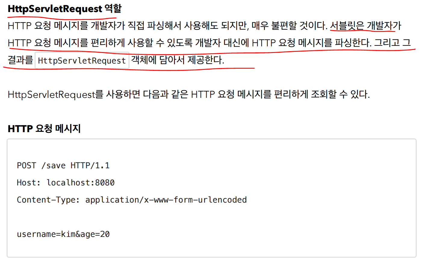 HttpServeletRequest 객체는 http요청메시지를 편리하게 읽어들이는 기능에다가 부가기능을 제공한다.