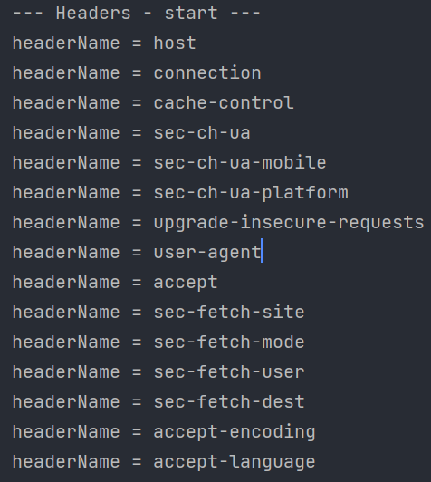 System.out.println("headerName = " + headerName);