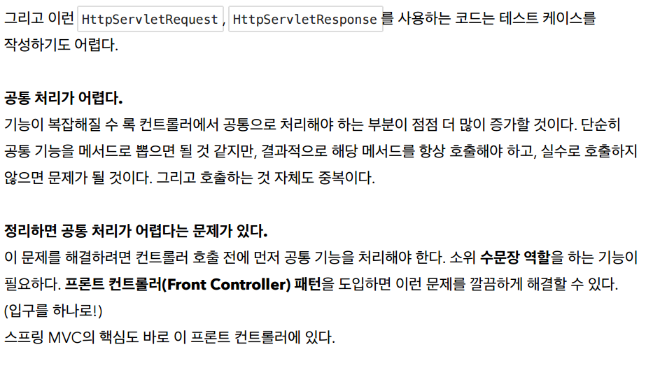 컨트롤러(서블릿),뷰(JSP)로 만들어본 MVC패턴의 한계가 있다.