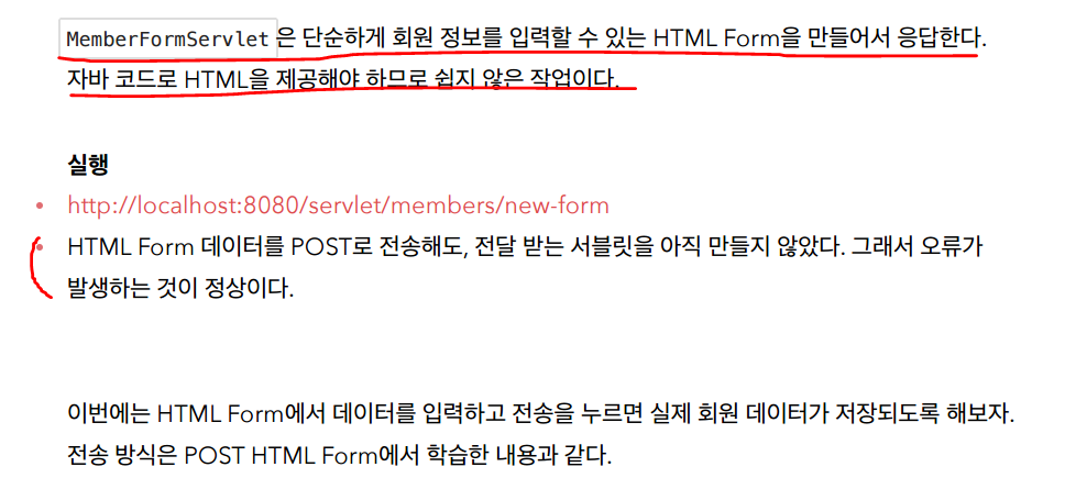 //코드르 보면 <form action=\"/servlet/members/save\" method=\"post\">\n" 부분이 있는데 form의 전송을 누르면 해당 url를 호출한다.