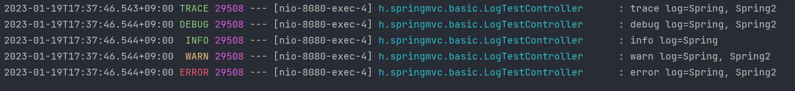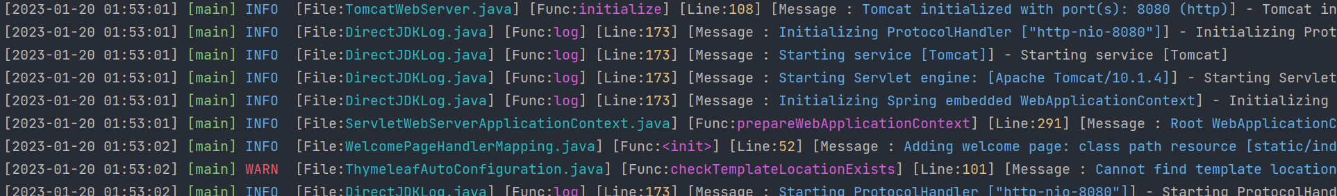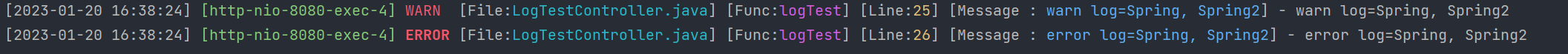 그래서 파일용 로그에는 색넣는것을 빼고, 전체적으로 로그패턴을 좀 더 간소화 하였다.