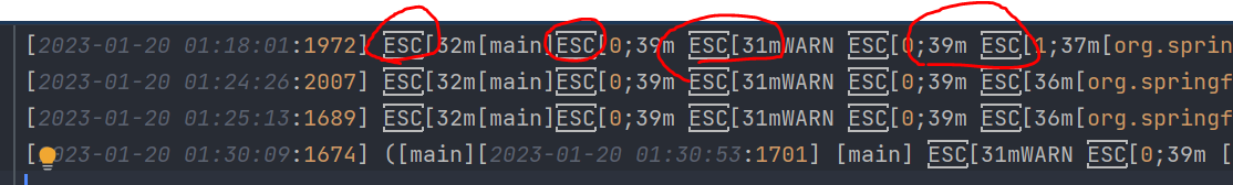 로그에 적힐때는 색넣은 부분앞에 이상한문자가 생긴다.