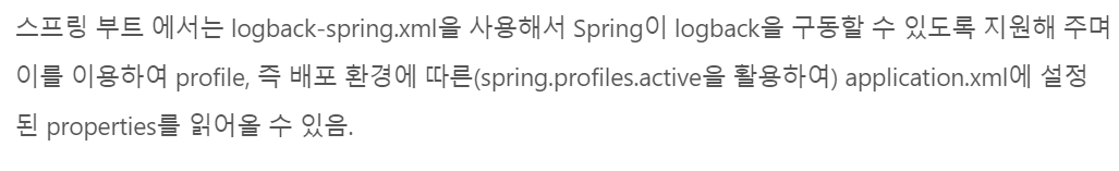 그러니까 application.properties나 application.yml과 같은 스프링 환경설정 값들을 logback환경설정 파일 (xml)안에서 접근하고 싶을때 사용한다.