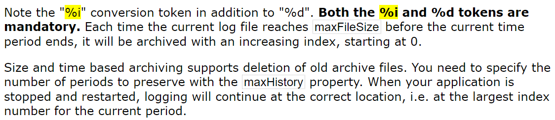 <maxFileSize>10MB</maxFileSize> <!--로그파일 최대 크기는 10MB로 설정-->