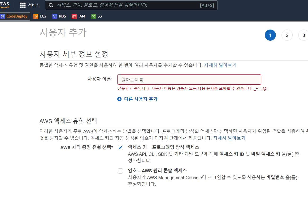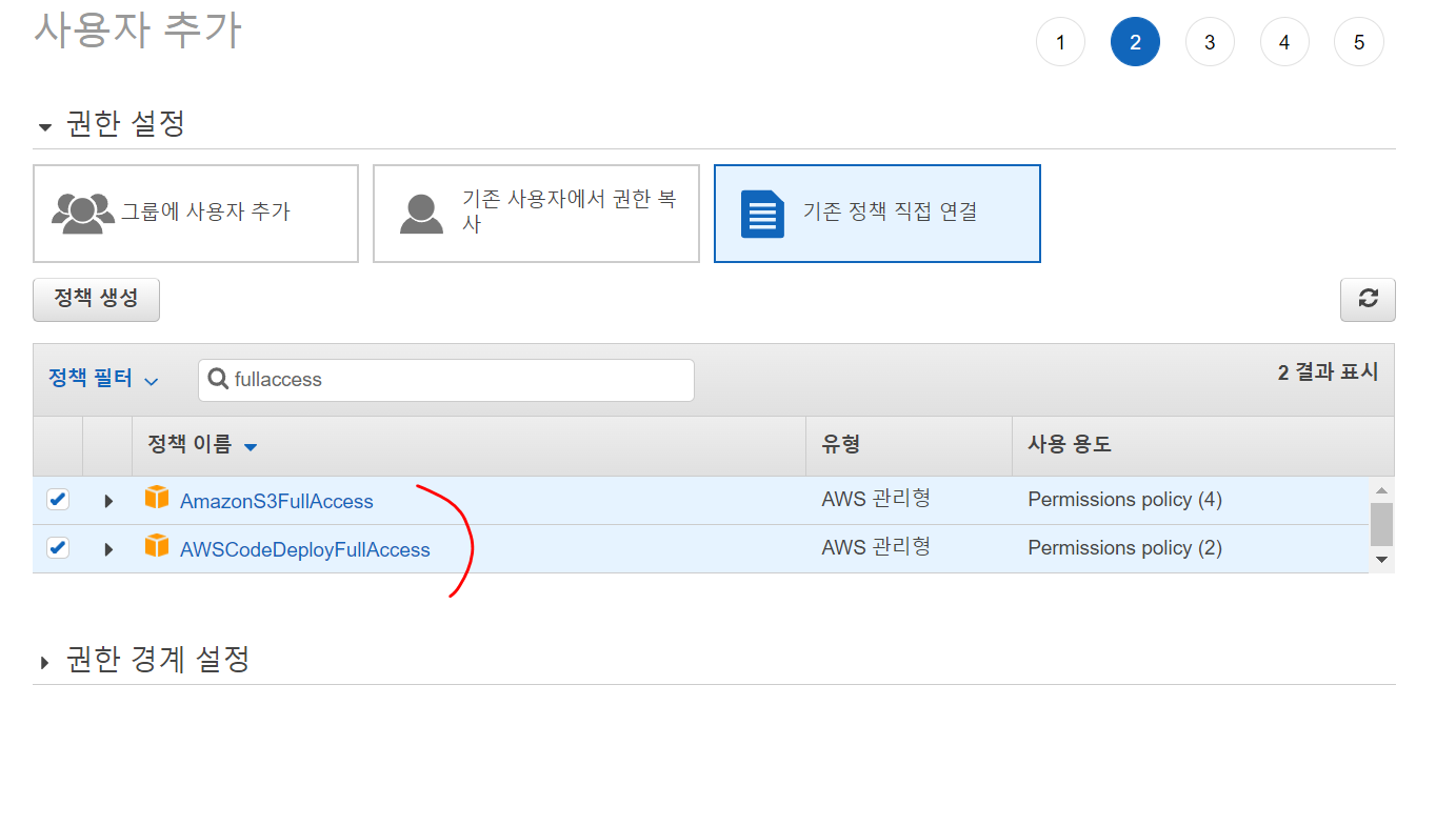 AmazonS3FullAccess 와 AWSCodeDeployFullAccess 를 선택