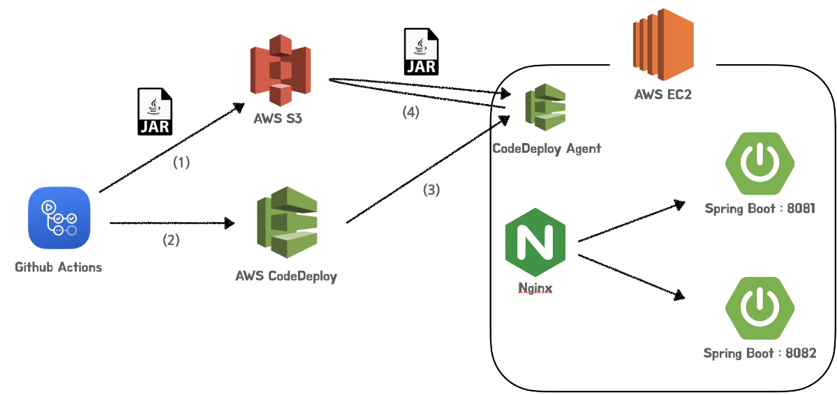 개요 안녕하세요! 이번 시리즈에서는 제목에서와 같이 Github Actions 와 CodeDeploy, 그리고 Nginx 를 사용하여 하나의 서버에서 최소 규모의 무중단 배포를 진행하는 방법에 대해 정리해보려고 합니다.